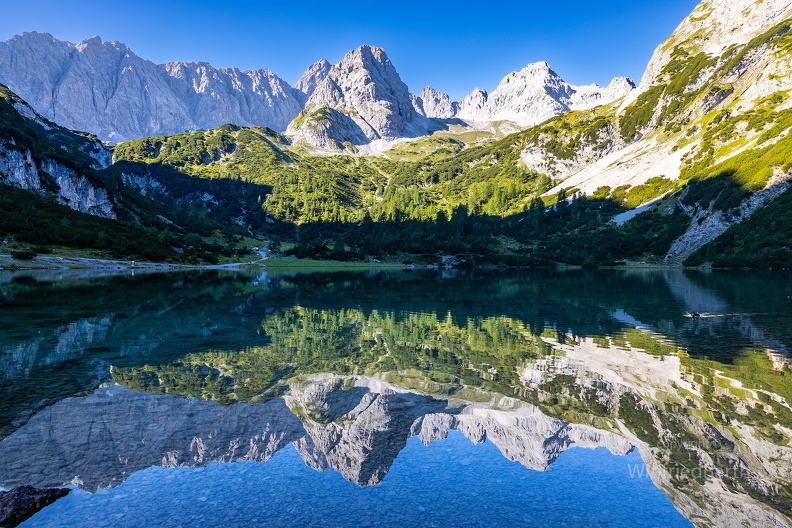 Panorama, Ort, Ehrwald, Seebensee, See, Natur, Landschaft, Berge, Zugspitzmassiv, Wasser